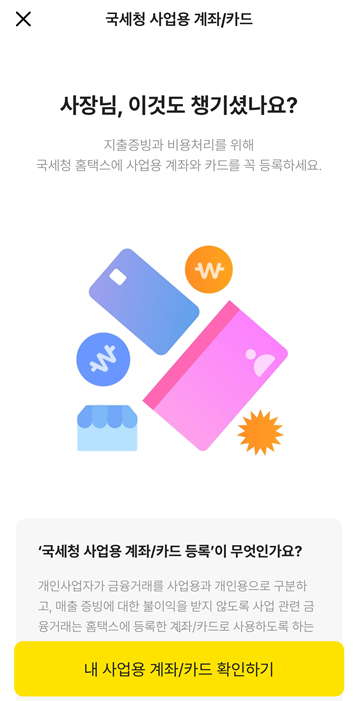단! 카드를 직접 수령하기 전에는 국세청 사업용 카드를 등록할 수 없으니
